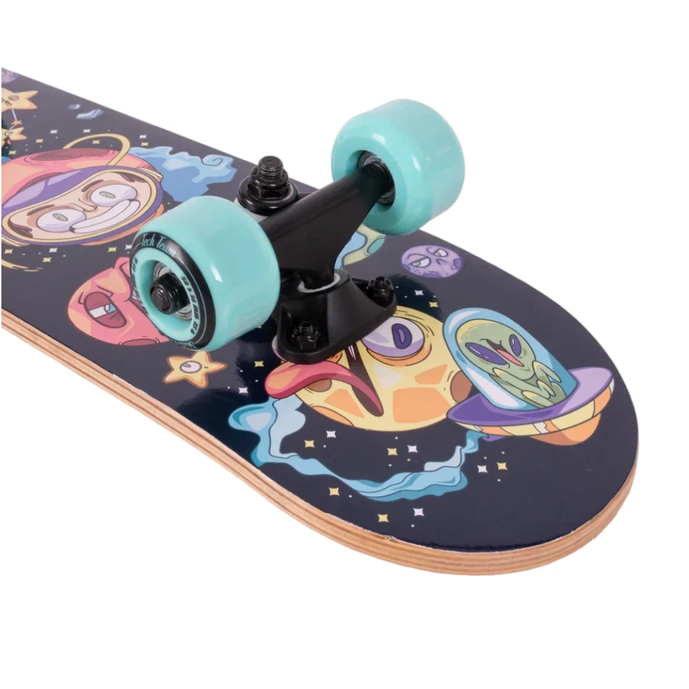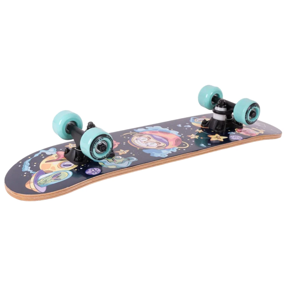 Яркий дизайн делает эту модель неповторимой: нижняя часть деки украшена крутым принтом в голубых тонах с изображением космоса и инопланетян. Это не просто товары для спорта, это - произведение искусства на колесах.
