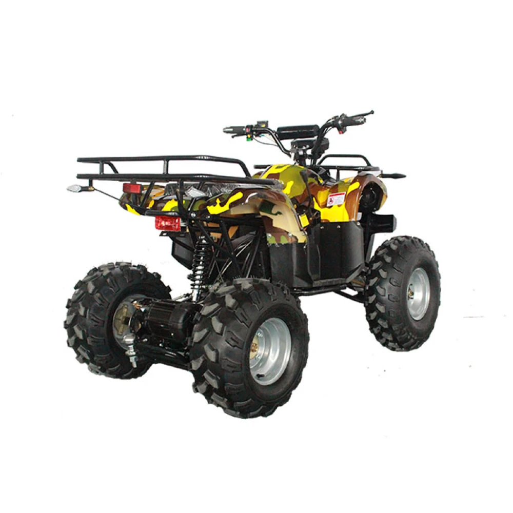 Скорость квадроцикла равняется 40 км/ч – это больше чем у целого ряда электроскутеров. На все четыре колеса установлены надёжные тормоза: барабанные механические спереди и дисковые гидравлические сзади. Также у GreenCamel Atakama T400 имеется: фаркоп, сигнализация, спидометр с LED-подсветкой, а багажники есть и спереди и сзади.