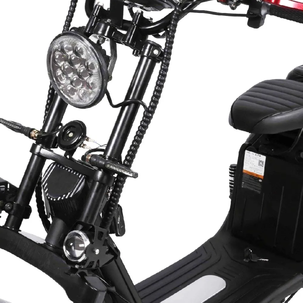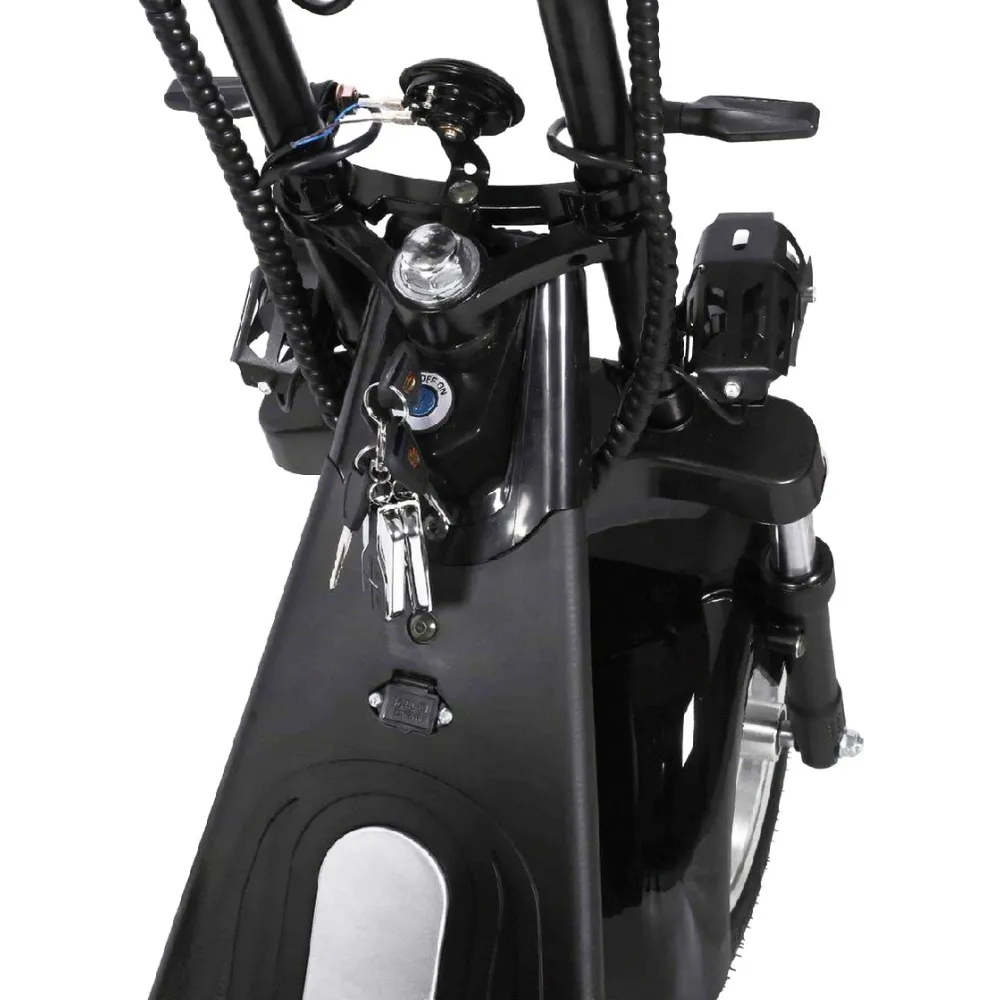 Электроскутер  Citycoco Kugoo C6 – обновленный вариант бренда занимает лидирующие позиции в продажах. Брутальный кричащий дизайн заинтересовал райдеров-экстремалов и любителей рыбалки. Широкая отлично сцепляемые шины обещают отличную проходимость и отсутствие проблем в дороге. Техника создана для езды по бездорожью, не разочарует при преодолении небольших препятствий и путешествии по лесным тропинкам.