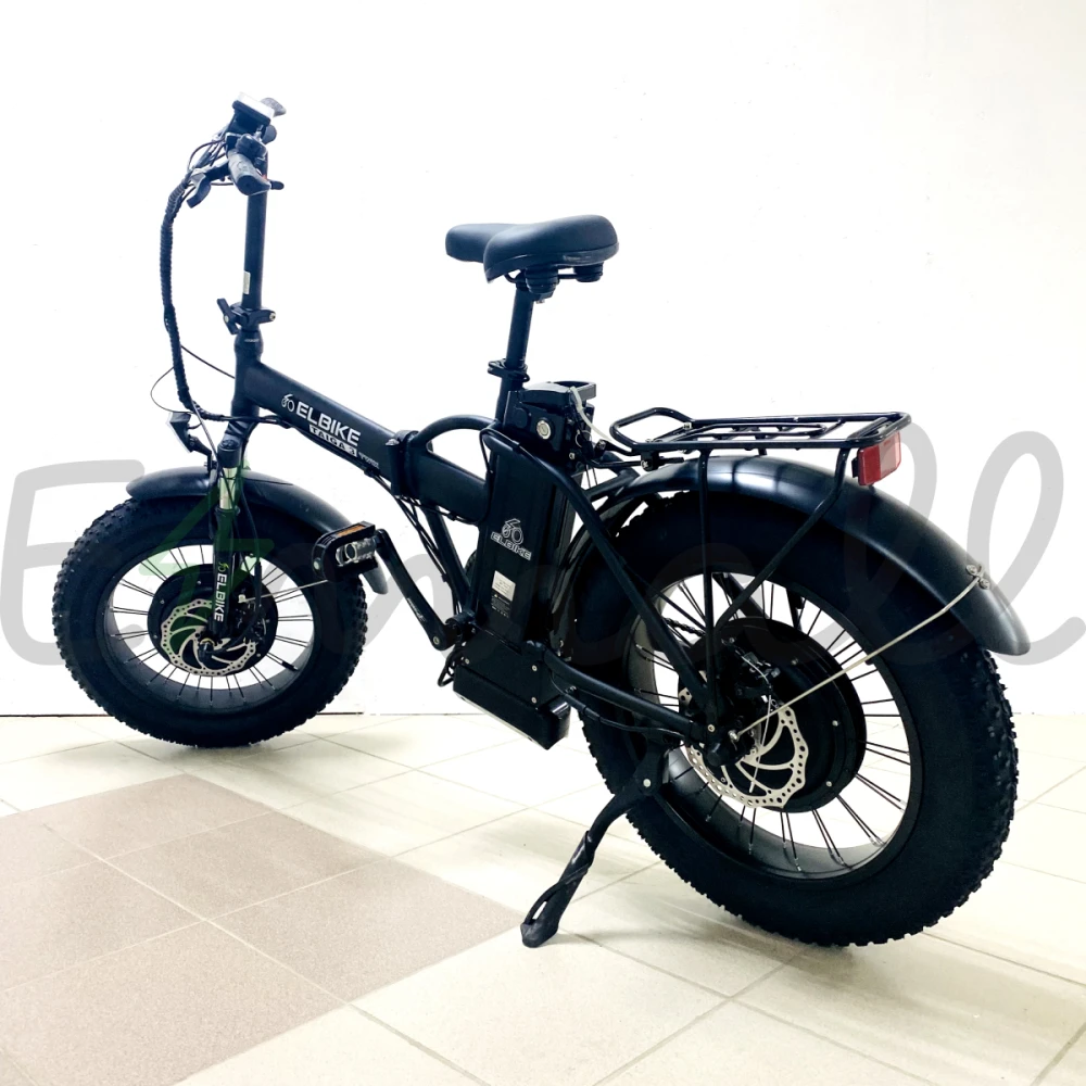 Двигатели изготовлены в соответствии с современными требованиями. Мощность двух моторов в пределах 1000 Вт, позволяет набирать разгон до 47 км/час. Техника также рассчитана на переход в педальный режим для улучшения скоростных характеристик и увеличения расстояния пути. Широкие надувные колеса позволяют легко преодолевать пересеченную местность и дорожные неровности. Модель подойдет для поездок по песку и снегу. Алюминиевая рама прочная и легкая, имеет складную конструкцию для простой транспортировки и хранения. Тормозная система усовершенствованная, состоит из дисковых тормозов.