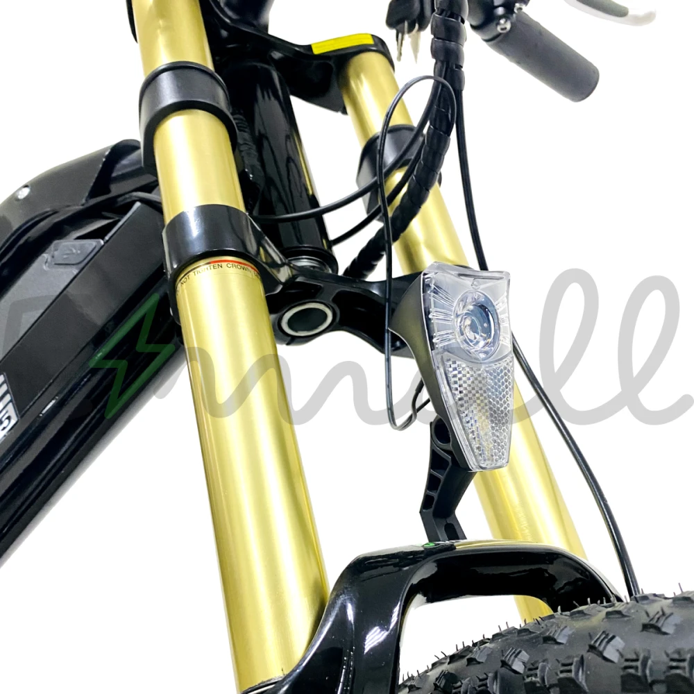 Модель относится к категории городской/внедорожной. При массе 26 кг рассчитана на грузоподъемность до 120 кг. Оснащена информативным дисплеем, дисковой механической тормозной системой, звуковым сигналом, крыльями, регулируемым седлом и емкой АКБ.