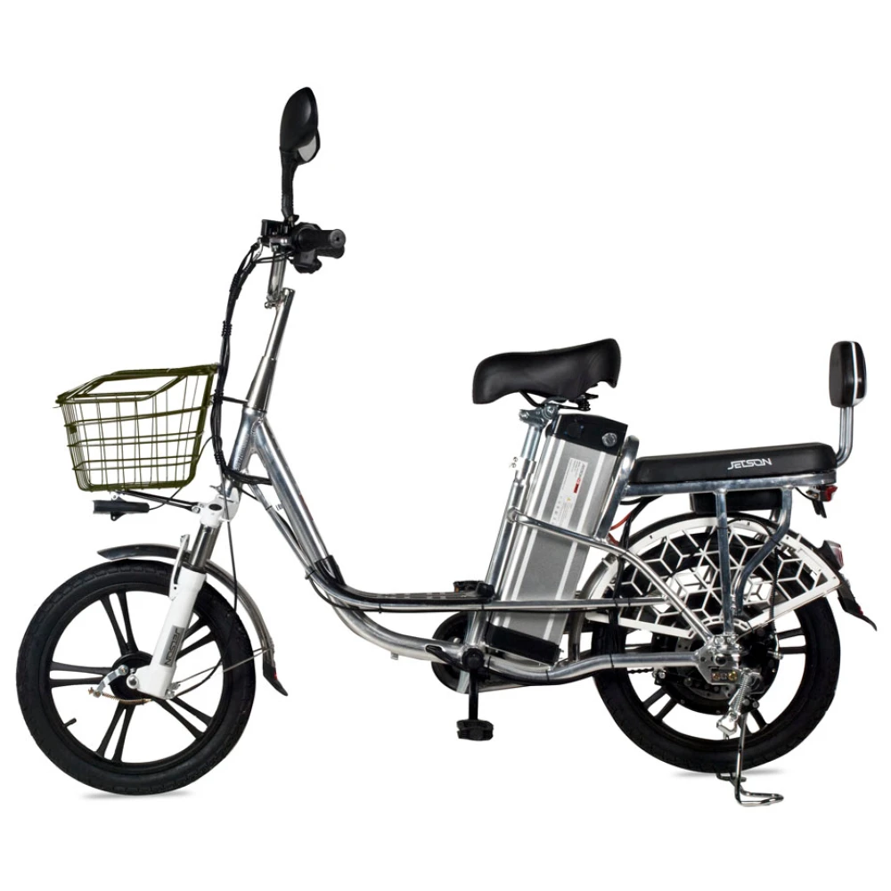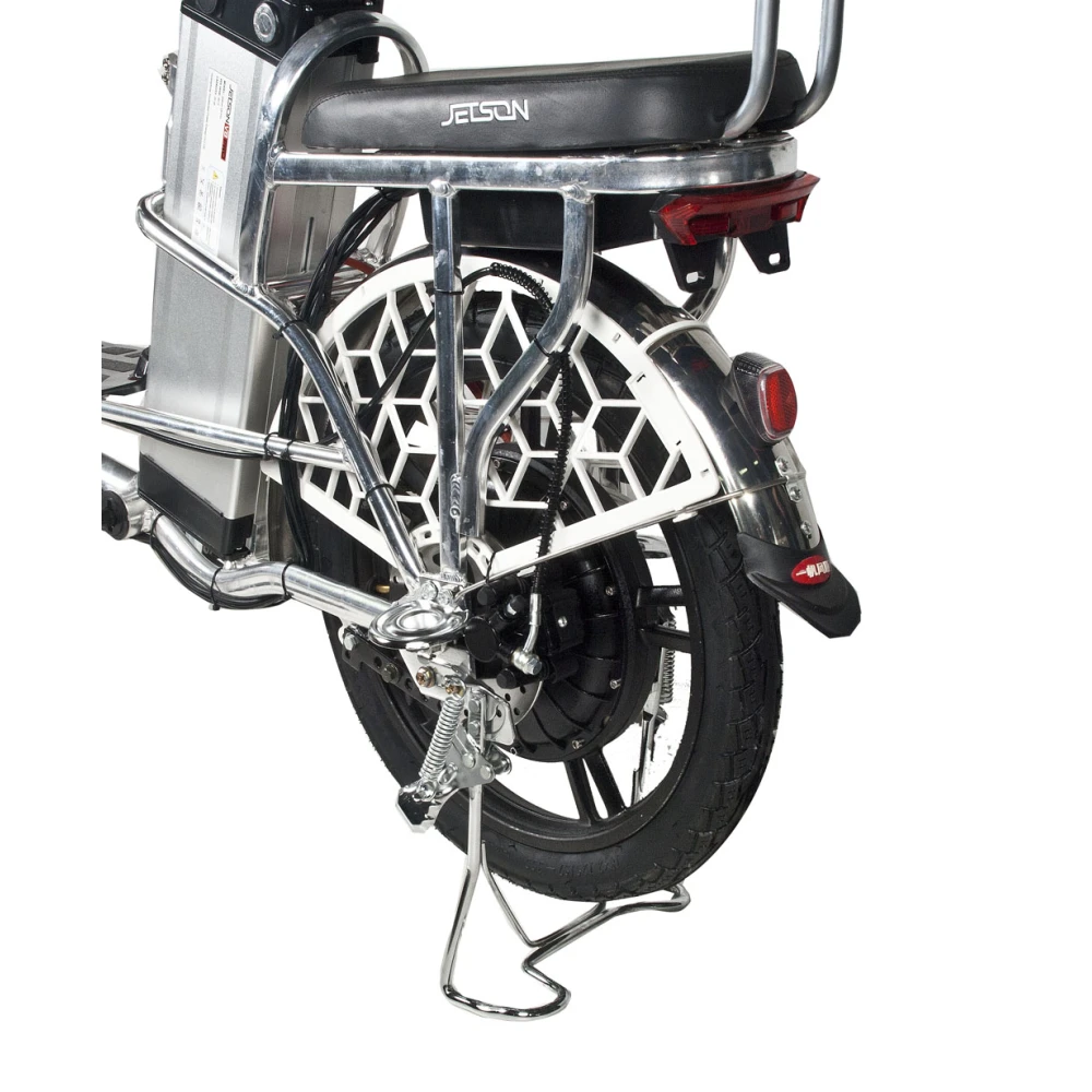 Электровелосипед Jetson Pro Max (60V13Ah) (гидравлика)– удобная техника с отличными параметрами комфорта понравилась семейным парам и лицам, проживающим в дачной местности. Модель весом 28 кг и грузоподъемностью 200 кг рассчитана на водителя и пассажира. Технические параметры лучшие в своей линейке. При мощности движка 500 Вт велогибрид способен разогнаться до 50 км/час. Емкости батареи хватает на городской вариант техники рассчитанный на водителя и пассажира. Удобный для 100 км пути на одной подзарядке. Приобрести электровелосипед для ежедневной езды предлагает наш интернет-магазин.