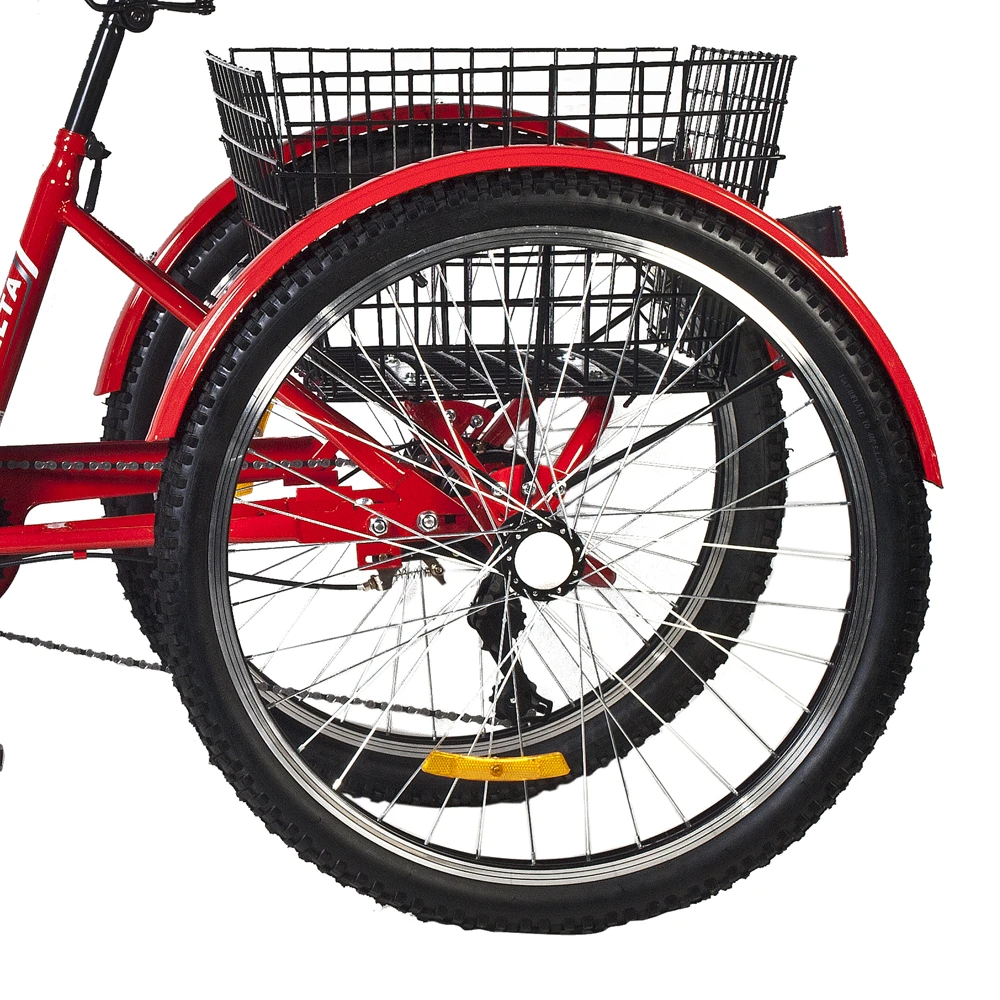Модель выглядит презентабельно и заметно на фоне другой техники. Вызывает зависть в глазах других райдеров. Трицикл при весе 29,7 кг рассчитан на грузоподъемность 180 кг, предназначен для пользователей с ростовыми параметрами 178-185 см. 26-дюймовые колеса, напоминающие внедорожные отлично сцепляются с разными видами покрытия, накатистые и устойчивые. Мягкое седло увеличивает степень комфорта райдера, минимизирует нагрузку на позвоночник, исключает появление усталости.