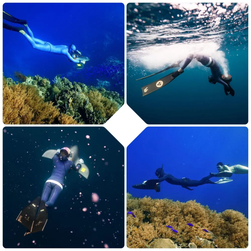 Качественный и надежный аквабайк неоднократно проверен на герметичности и соответствие другим характеристикам. С уровнем мощности 800 Вт с подводным аквабайком можно покорять до 20 м морских глубин, исследовать их тайны, наслаждаться рыбами и водорослями от 50 до 100 минут. Фирменная литий-ионная батарея – гарантия длительного путешествия. При необходимости водный райдер может пользоваться трехскоростным режимом (4 км/ч, 6 км/ч, 9 км/ч).
